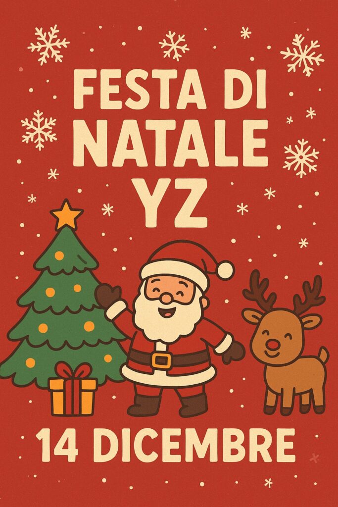 Siete tutti invitati alla festa di Natale che si terrà presso la palestra della parrocchia Beata Vergine Immacolata domenica 14 dicembre 2025.